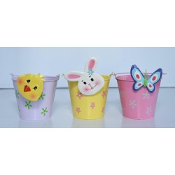 Jagan Hardware Metal Pot (Pack of 3) – Decorative Bucket with Rabbit, Butterfly & Bird Design | Home & Garden Planter | Indoor & Outdoor Décor - LG0373